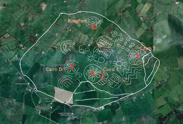 Существует предположение, что древние строители этого кромлеха бронзового века не просто нанесли на камни магические знаки в виде зигзагов (змей), кругов и лабиринтов. Кружащаяся тройная спираль — триксель — триединое божество, солнечные цветы, с точкой в центре — зерно, готовое к оплодотворению, поля, размежеванные и распаханные ровными бороздами, в ожидании первых лучей солнца…