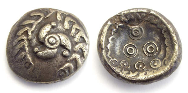 Такие же артефакты присутствуют в легендах эпохи короля Артура: Святая Чаша Грааля и святое копьё Лонгина, легендарный меч Экскалибур (англ. Excálibur), вложенный туда магом Мерлином, который никто не мог вытащить из камня, кроме короля Артура, кельта-валлийца. Название Меча происходит от валлийского: Caledfwlch; валлийский: vwlch или uwlch; бретонского Kaledvoulc’h (Каледвулх), корнуэл.: Calesvol; состоит из двух слов: «КОЛЕТ+ВАЛИТ»); в 1136 г. — меч назван Экскалибур, латин. Caliburnus. В кельтских легендах Мерлин — мудрец и волшебник, наставник и советник короля Артура. Валлийское имя Мерлина (Myrddin — происходит от бриттон.: *Mori-dunon – Мори-ДУНОН — «морская крепость»). Легенды о короле Артуре связаны со Скифией.